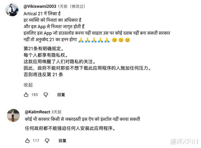 而反方的点则主要集中在“强制”和“隐私”这两个雷点,有的人觉得印度政府不能强迫人们去安装这个应用,还有人搬出了法条,指出印度政府此举有可能违反公民的隐私权条例。
