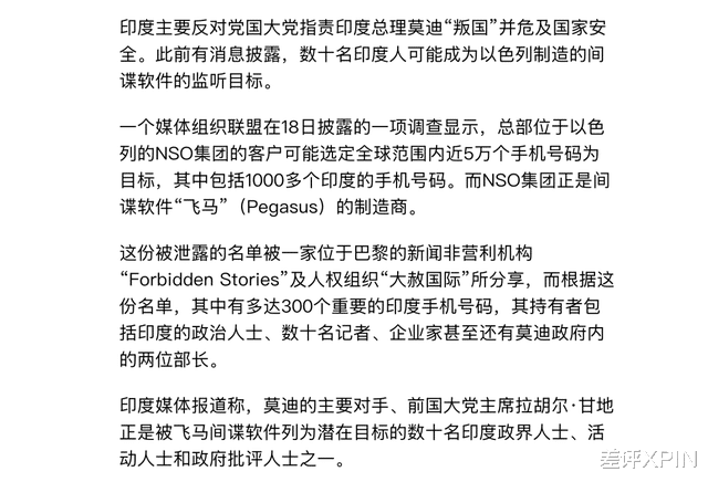 这个猜测并非空穴来风,因为在2021年的时候,莫迪政府发生过用“飞马”间谍软件进行监控的丑闻。