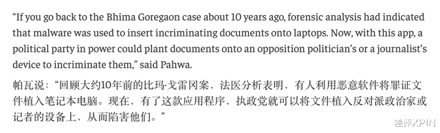 然后帕瓦就进一步指出,既然之前有这种例子在,那么保不齐之后执政党可以用这款应用将文件植入反对党或者记者的设备上,从而陷害他们。