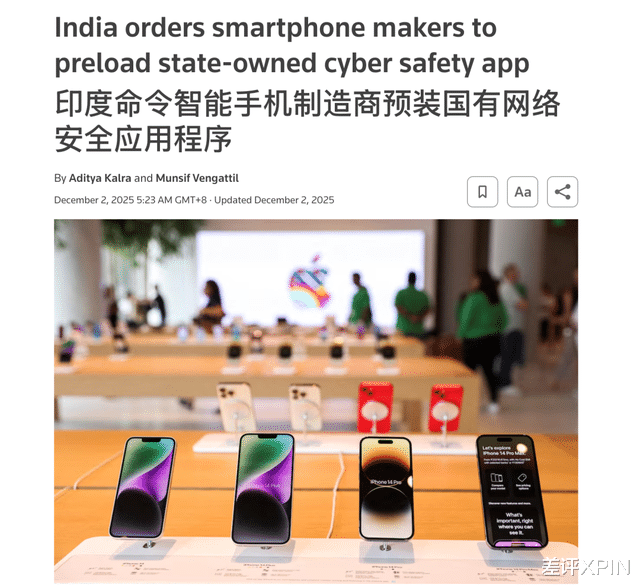 起因是这样的,印度政府在11月28日强制要求包括苹果、三星在内的所有手机厂商,必须在90天内预装一款叫做“Sanchar Saathi ”(通信伙伴)的网络安全应用。